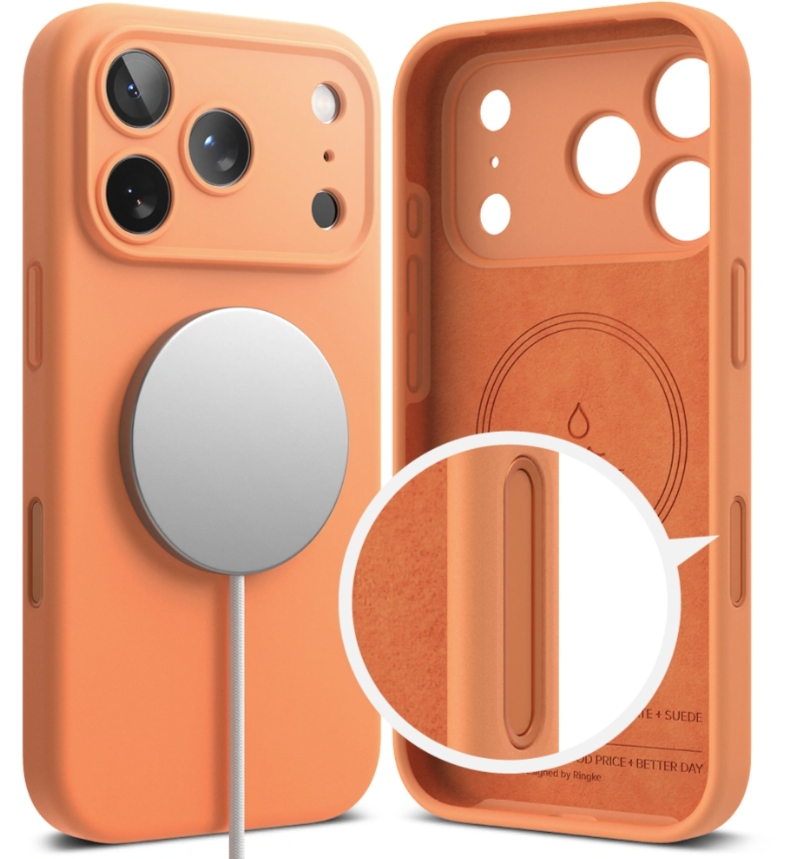 Silikónové puzdro Magsafe od Ringke je vyrobené z mäkkého a odolného termoplastického materiálu, ktorý je vďaka svojmu tenkému dizajnu ultraľahký. Puzdro perfektne sedí a neobmedzuje bezdrôtové nabíjanie.