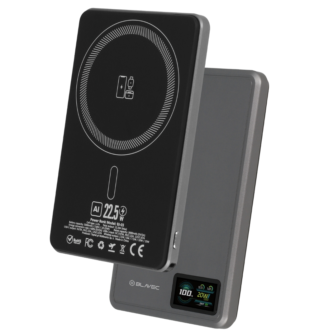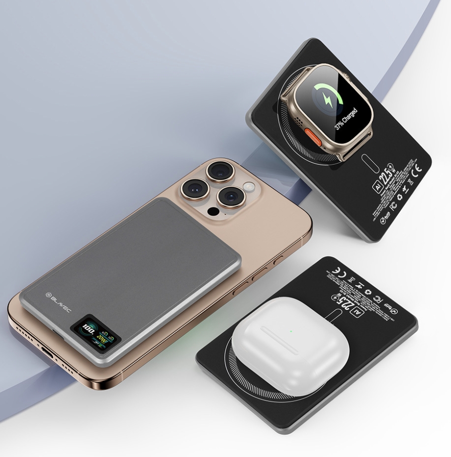 Power Bank 5000mAh BJ03 Slim 7,8 mm – Typ C – 22,5 W Magnetická bezdrôtová MagSafe 3 v 1